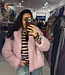 De Blush Belle Faux Fur Jacket in Soft Pink is een echte eyecatcher. Deze roze faux fur jas voelt heerlijk zacht aan en geeft je look direct een elegante en modieuze touch. Perfect jasje voor nu en de nog wat koudere voorjaarsdagen want helemaal in de kleur van 2026, Soft Pink!