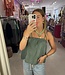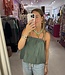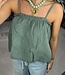 De schouderbandjes van de top zijn losse lintjes die je zelf kunt strikken. De top is een los en wijdvallende model