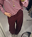 De broek is midwaist, bij een maat groter kun je de broek wat meer low waist dragen. En hoe leuk is de burgundy jeans met al die Soft pink kleurtjes.