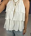 Speels en stijlvol! De Lizzy Top in white is een haltertop met opvallende ruffles – perfect voor een zomerse look of een festival. Lees meer..