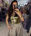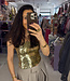 Style de Lumiere top voor een feestje, diner, festival of avondje uit met een blazer, statement oorbellen en hakken voor een complete look. Liever dezelfde top in een koelere tint? Bekijk dan ook de zilveren variant.