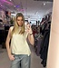 Wat deze top extra bijzonder maakt, is het verfijnde detail aan beide zijkanten. De stof wordt daar samengebracht door een mooie gouden ring, waardoor een vrouwelijk en flatterend geplooid effect ontstaat. Dit geeft de top nét dat beetje extra en zorgt voor een luxe uitstraling.