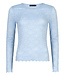 De Knitted Top Balou in light blue met burgundy details is e..